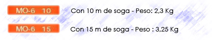 caída especialmente concebido para soga de diámetro 15mm suministrada con el sistema
